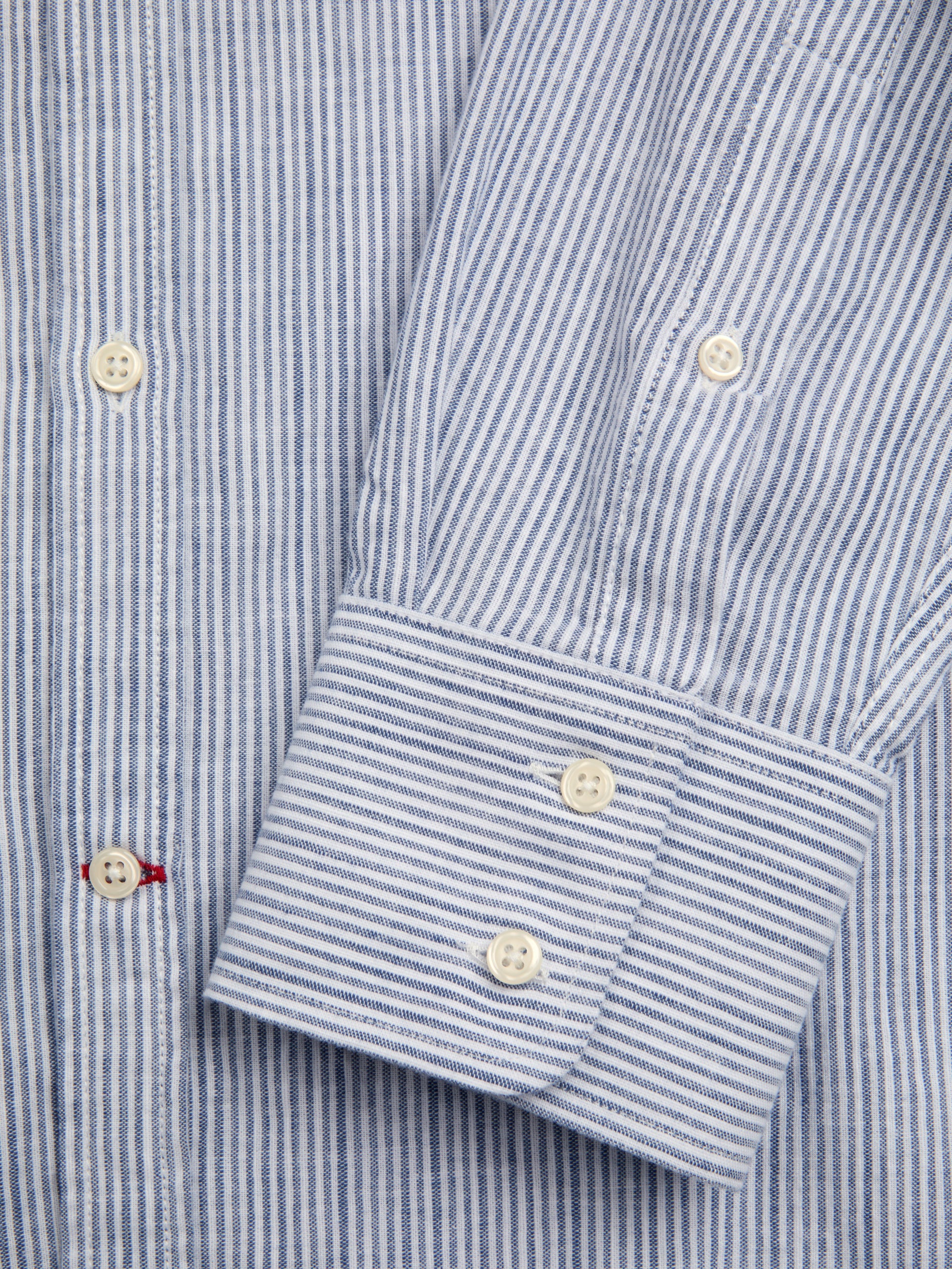 • Signature red bar-tacked button hole detail