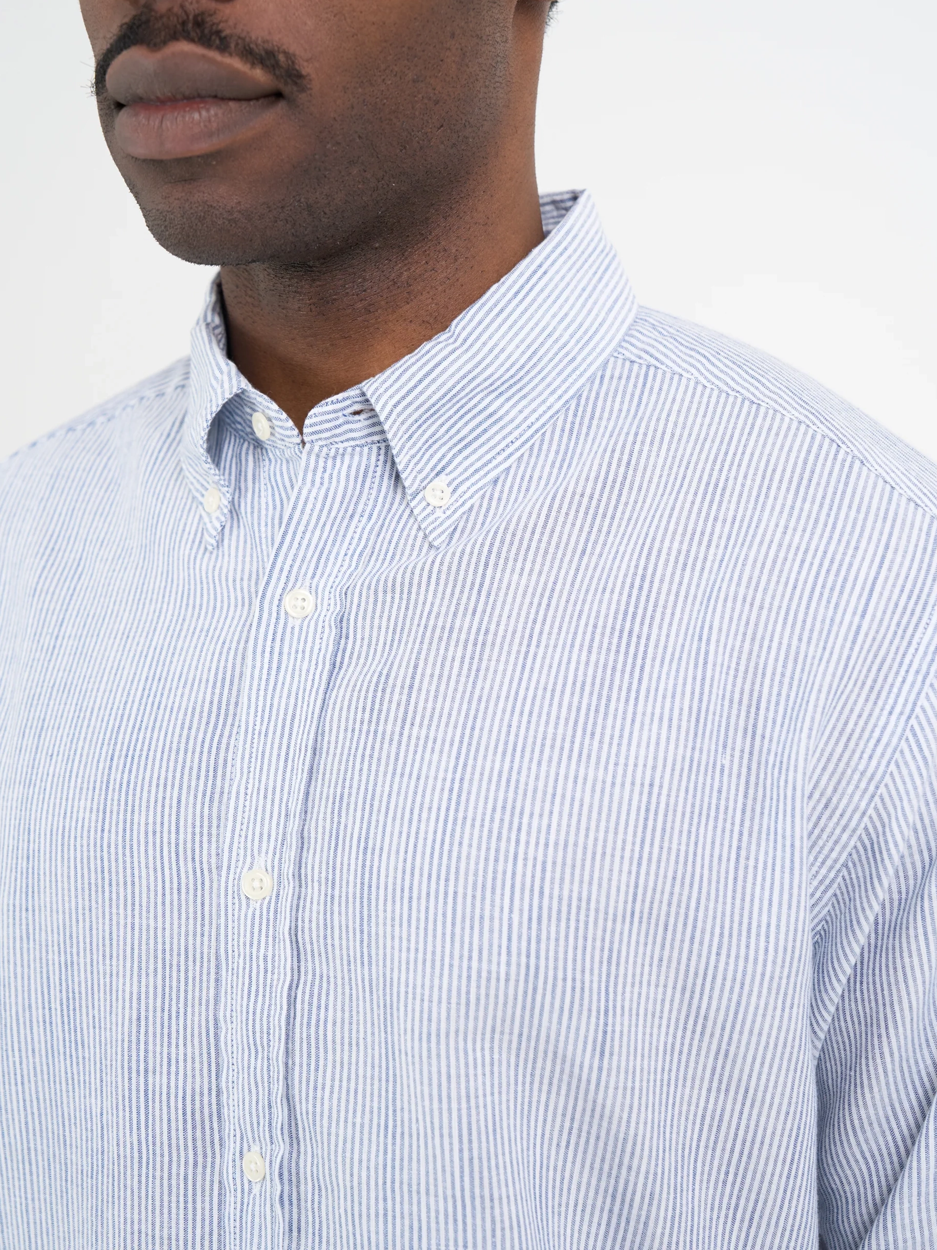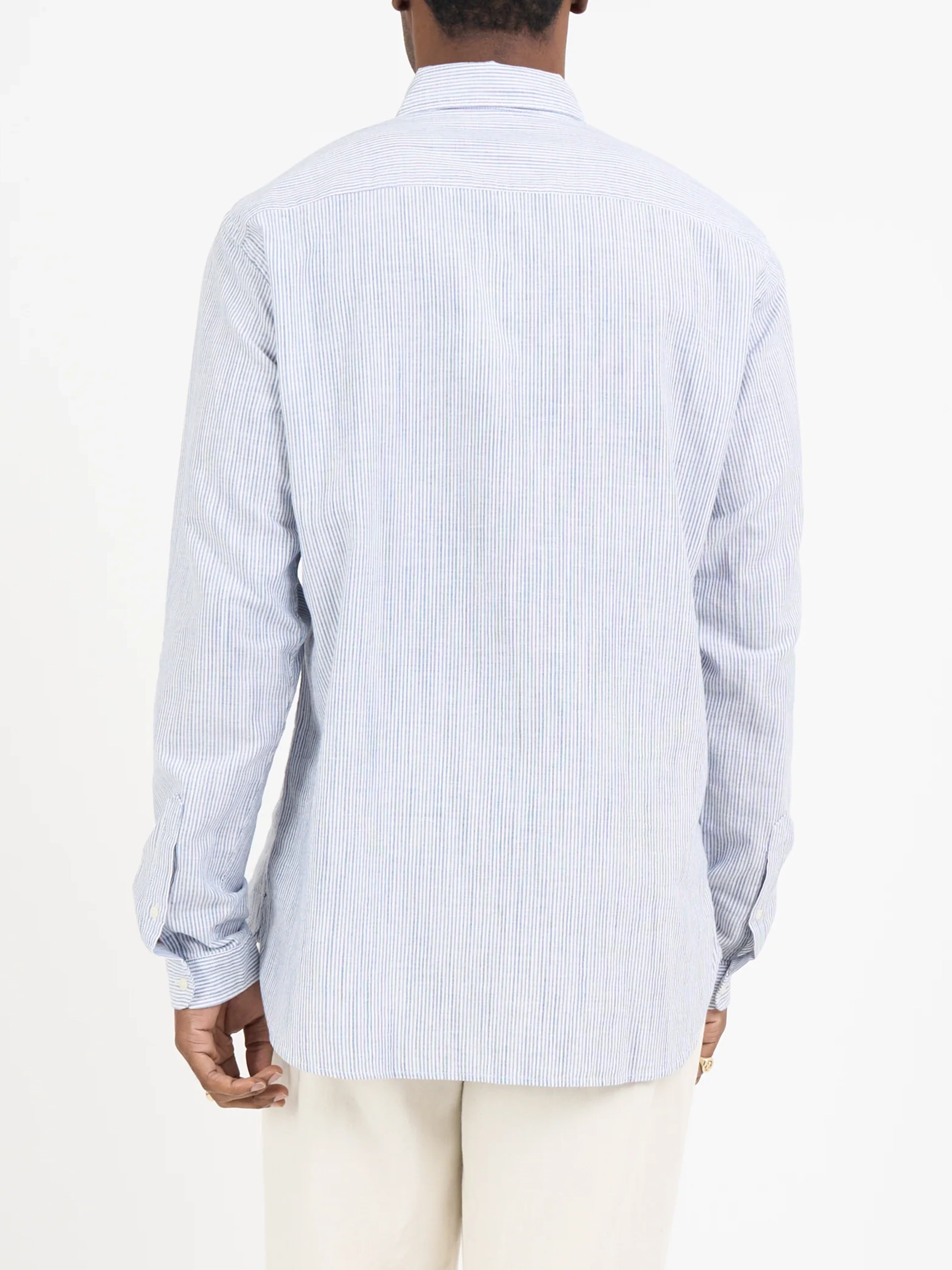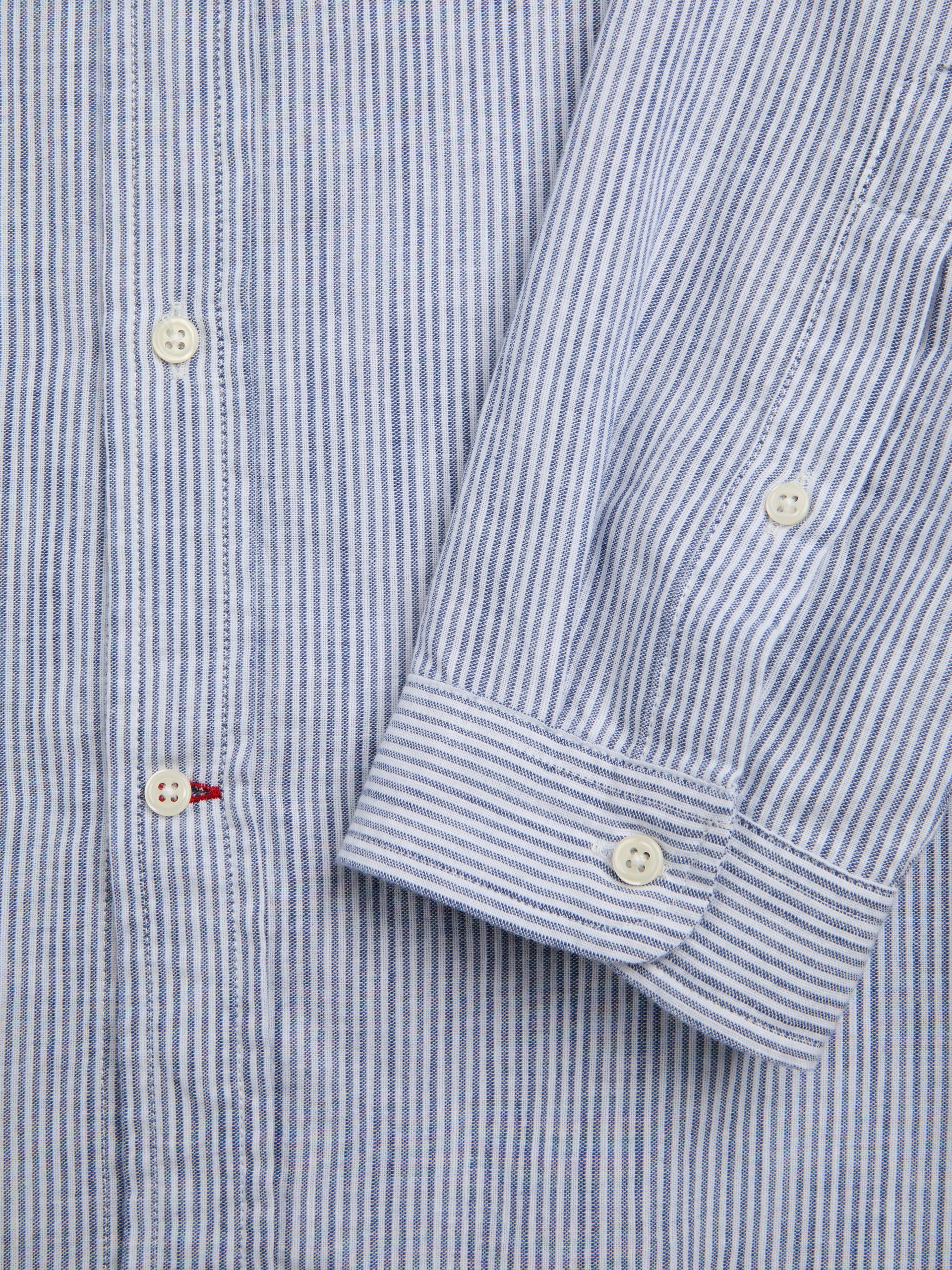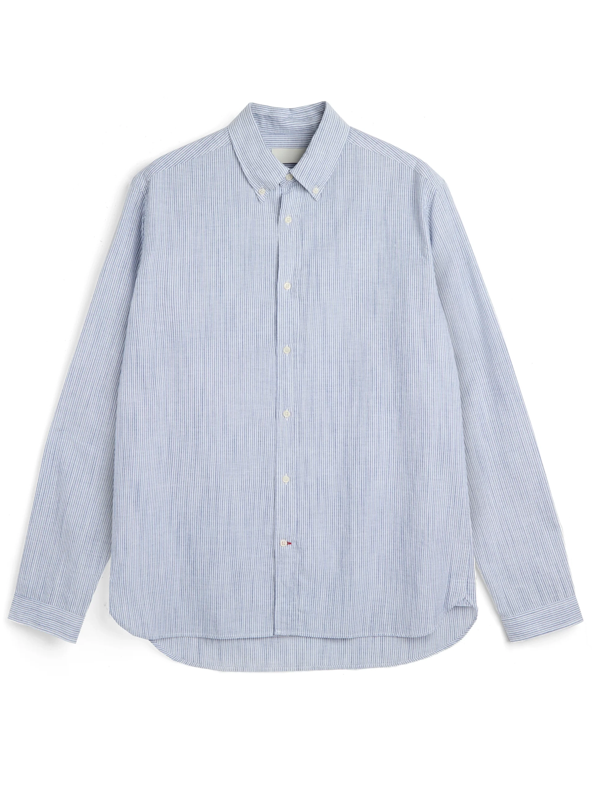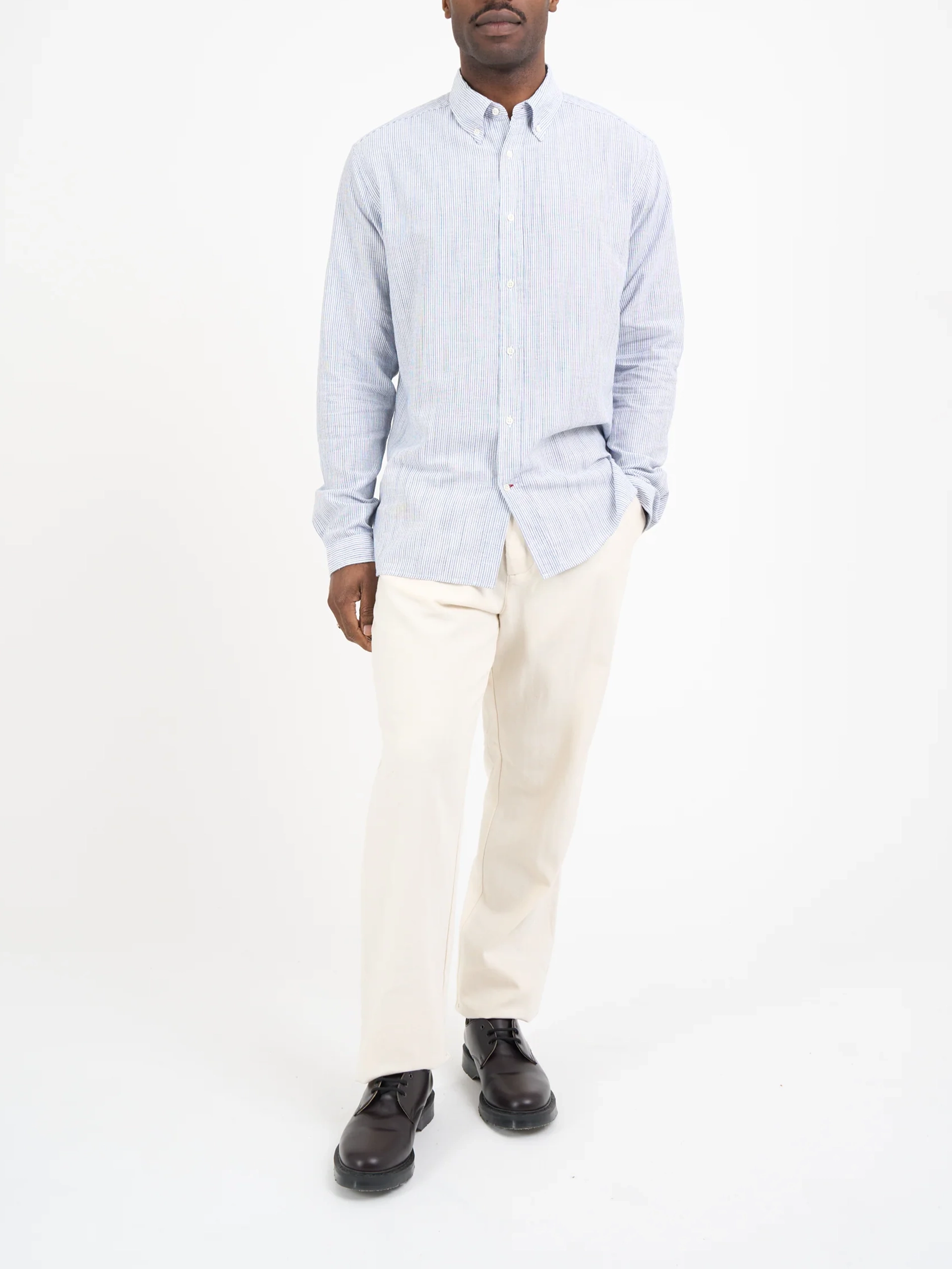 The shirt is a timeless button-down collar shirt for those preppy smart-casual looks. This style has been beautifully made using a lightweight slub-striped cotton with a subtle textural handle.