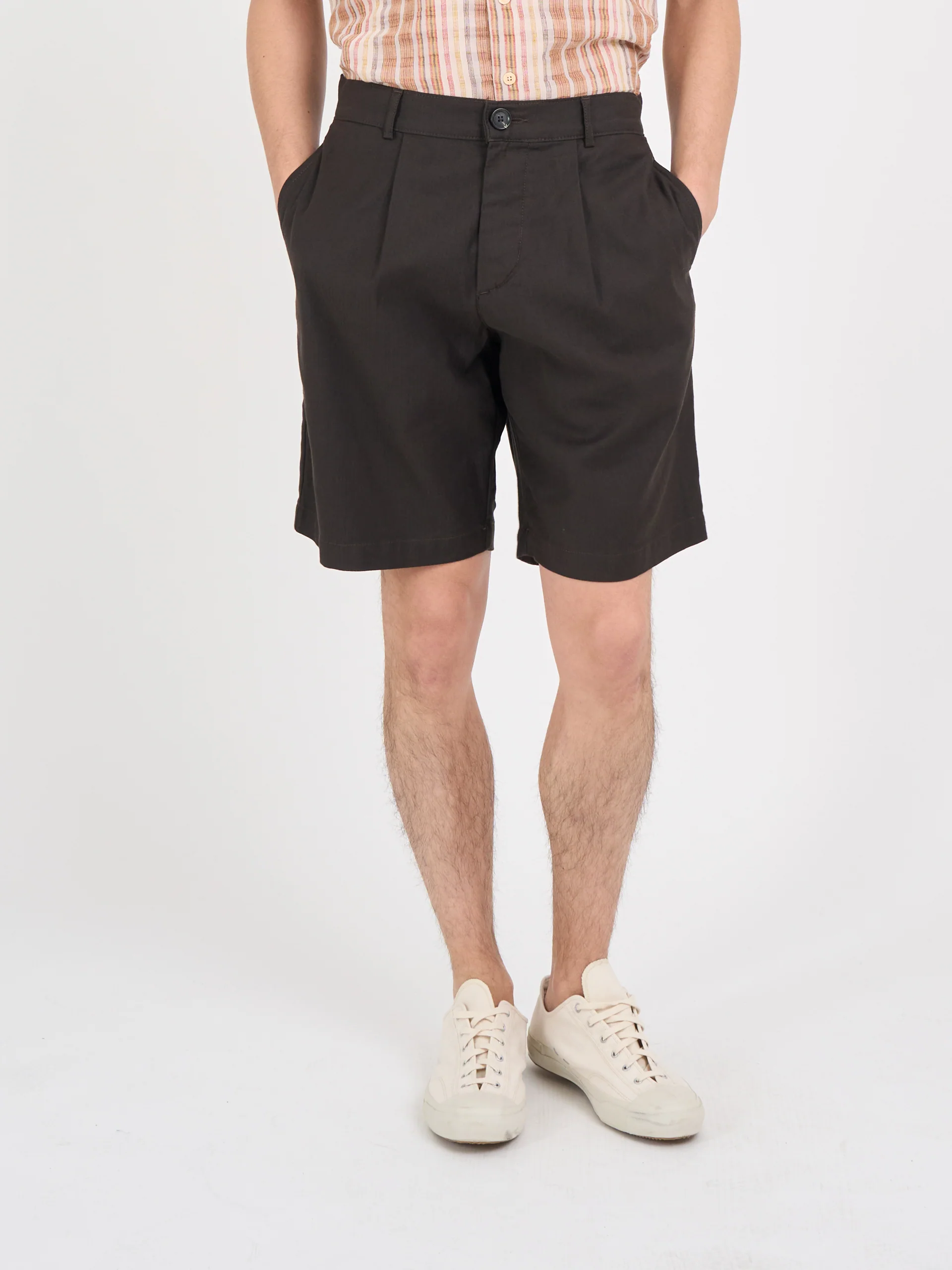 • Regular-fit, pleated shorts that sit just above the knee
