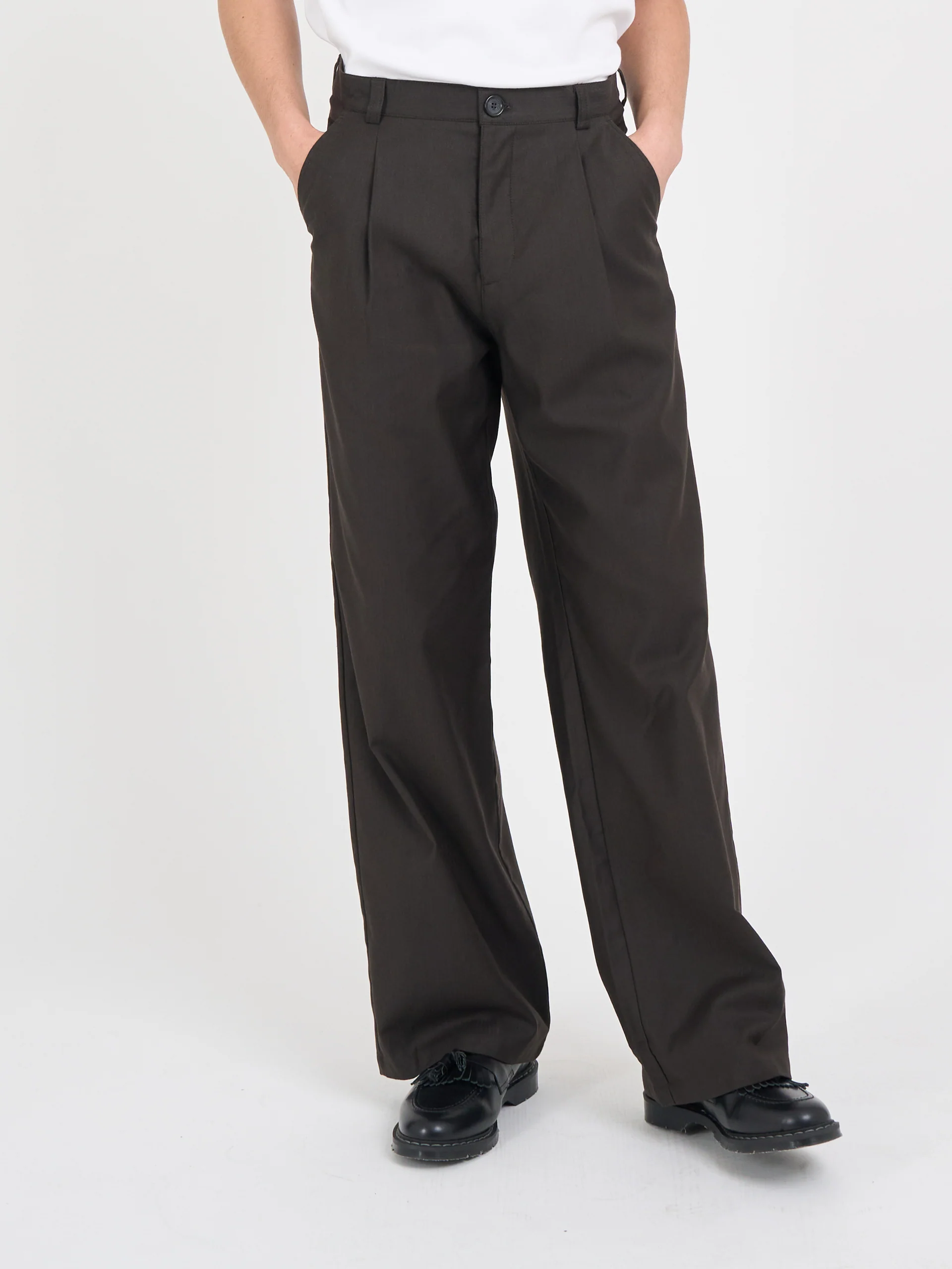 • Wide fit, pleat fronted trousers