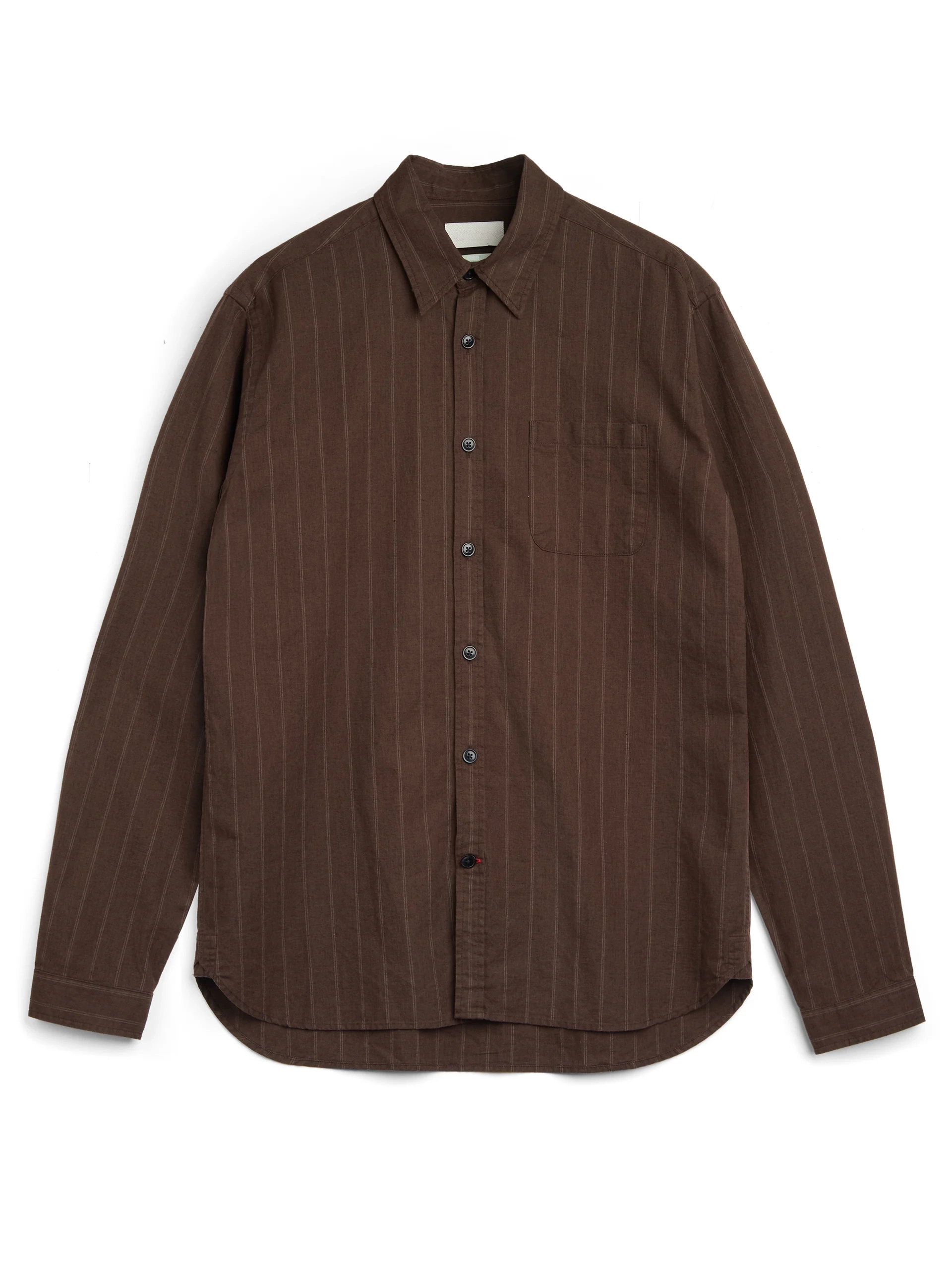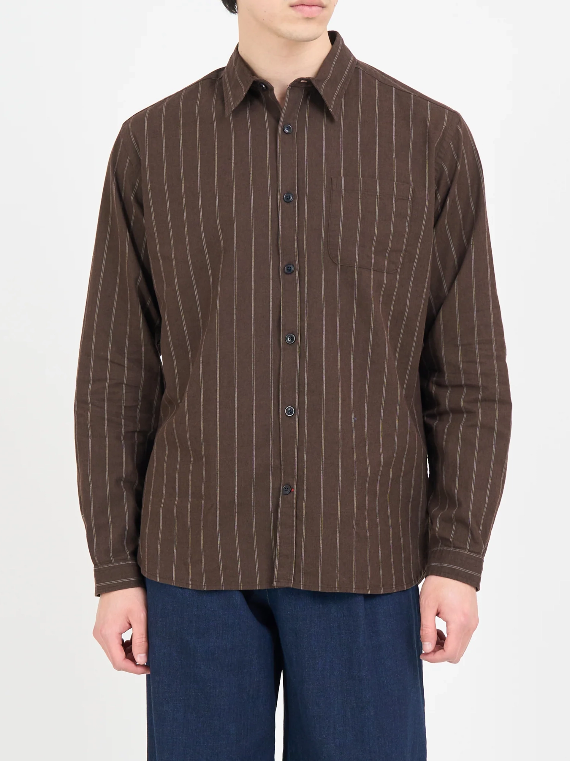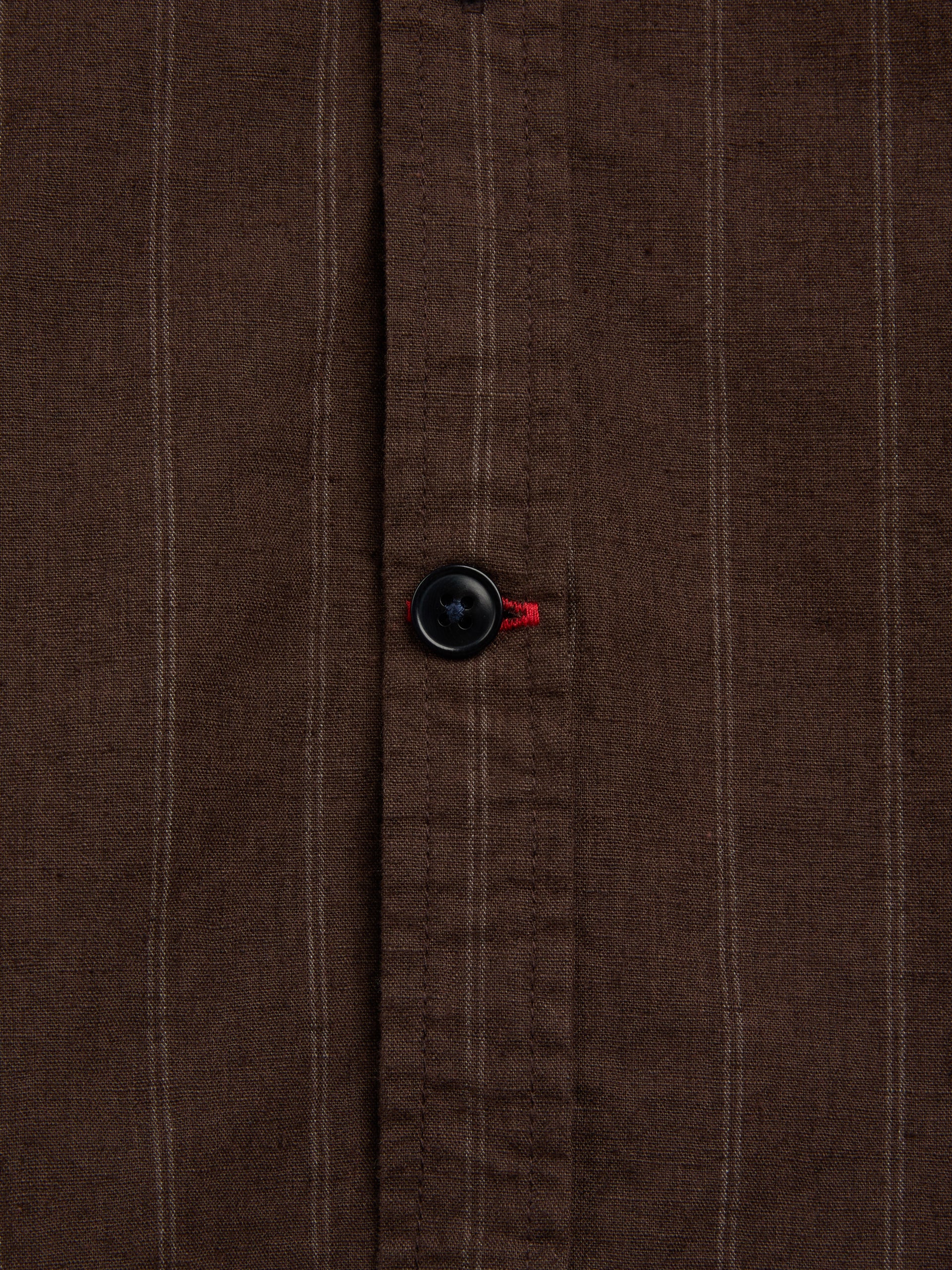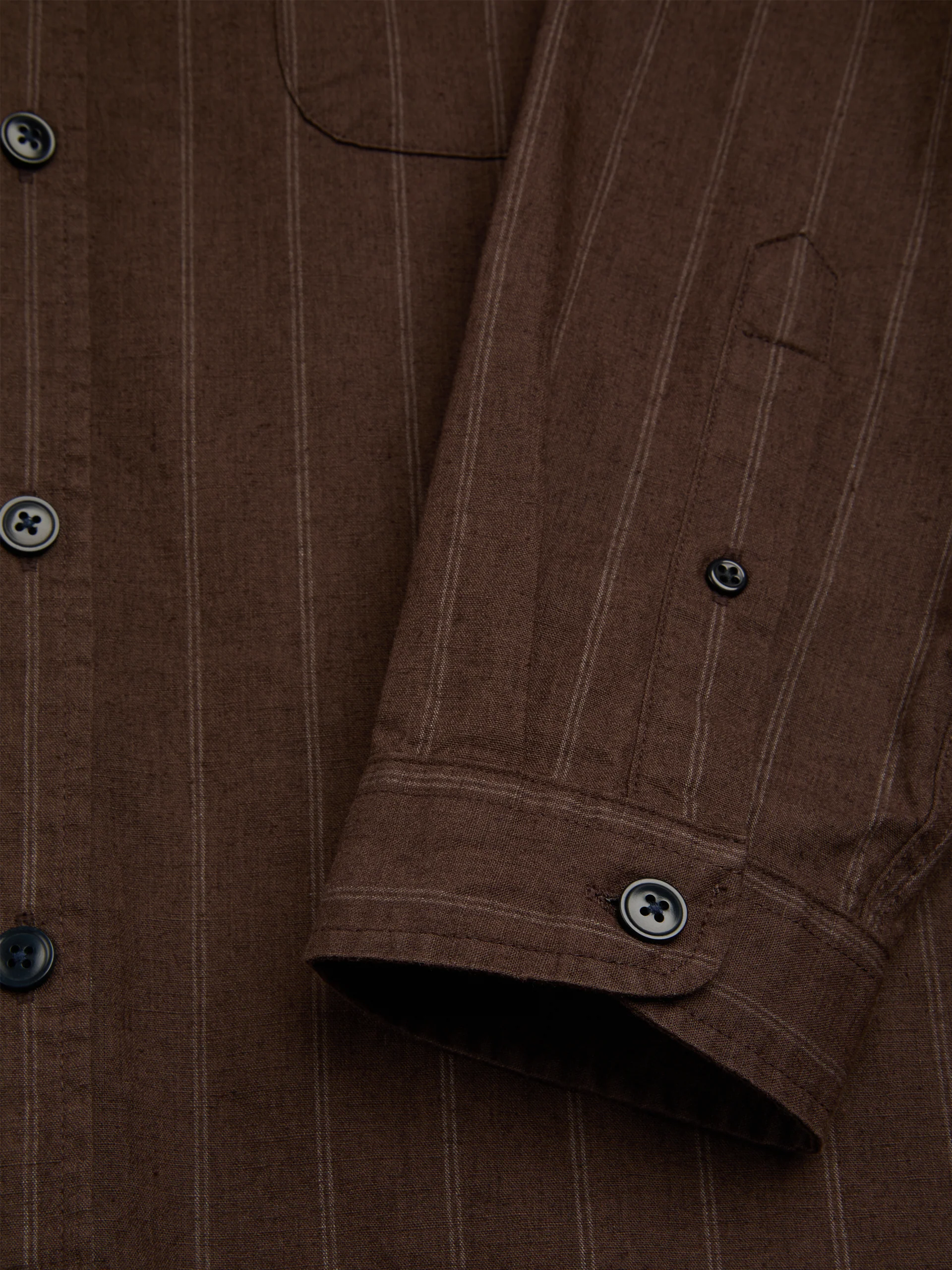Casual Style Long Sleeve Brown Cotton-Linen Shirt 1462322