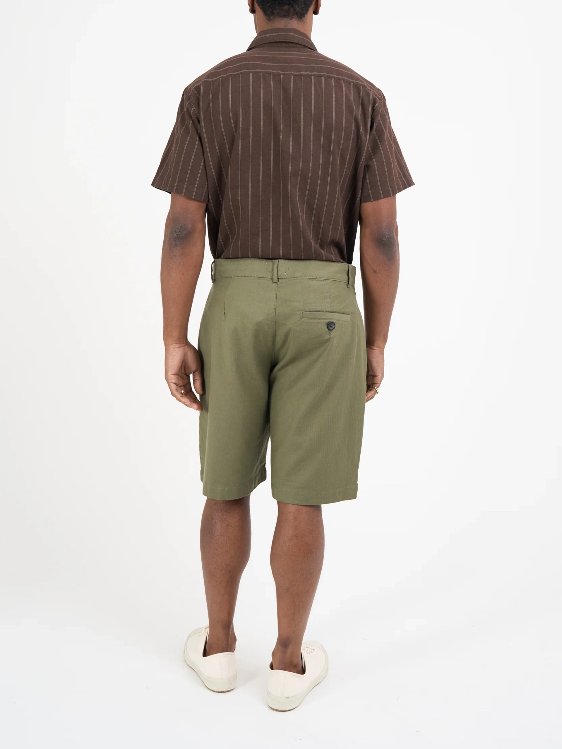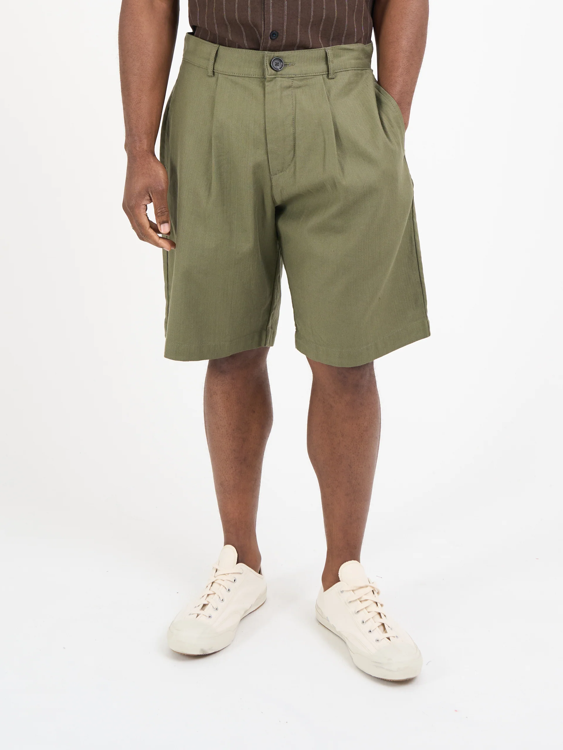 Take a casual approach to tailored shorts with this pleated style. Crafted from a linen and cotton  with a herringbone weave, these shorts finish just above the knee are can be paired with a smart polo or short-sleeve shirt for a slick summer look.