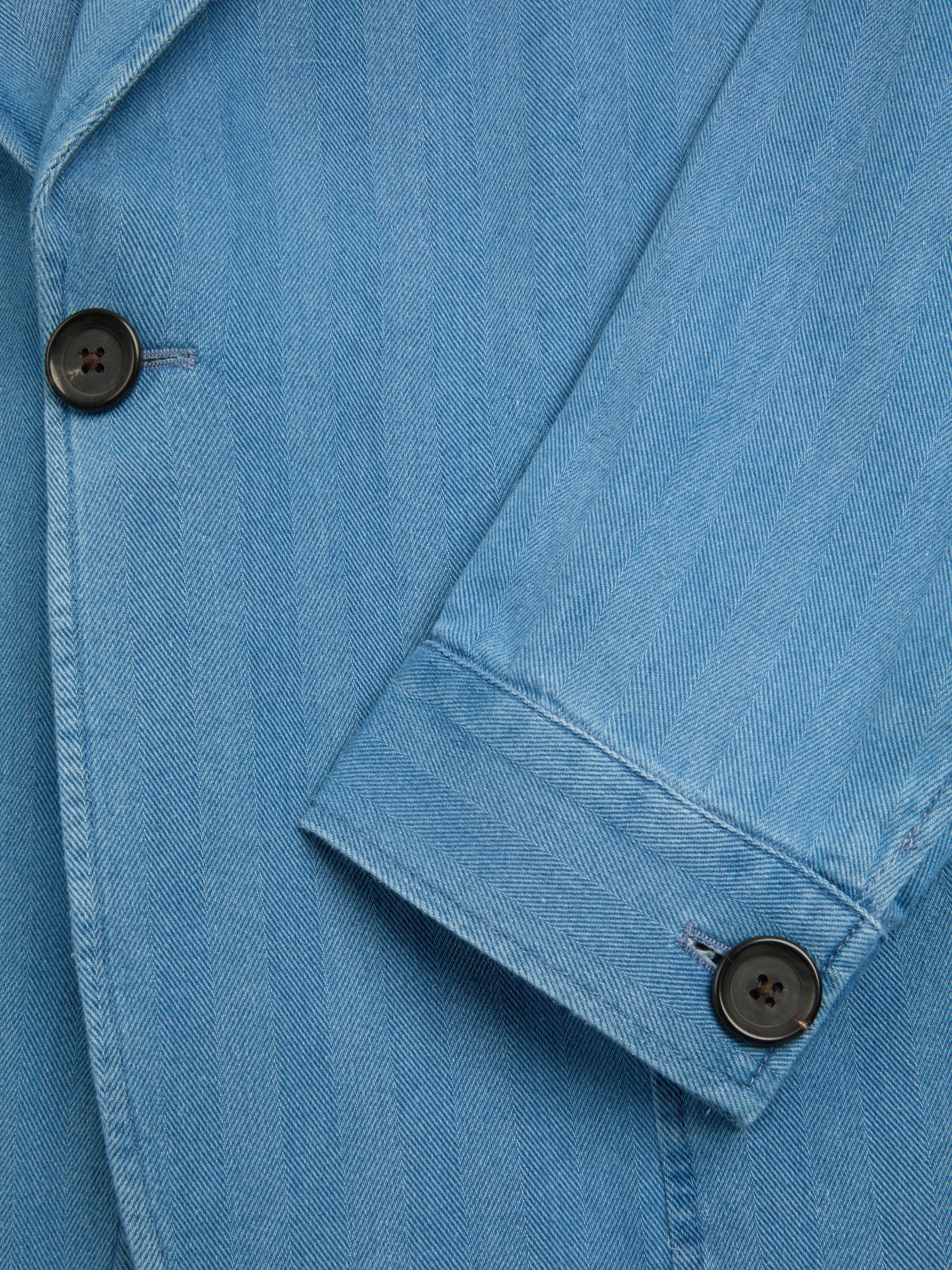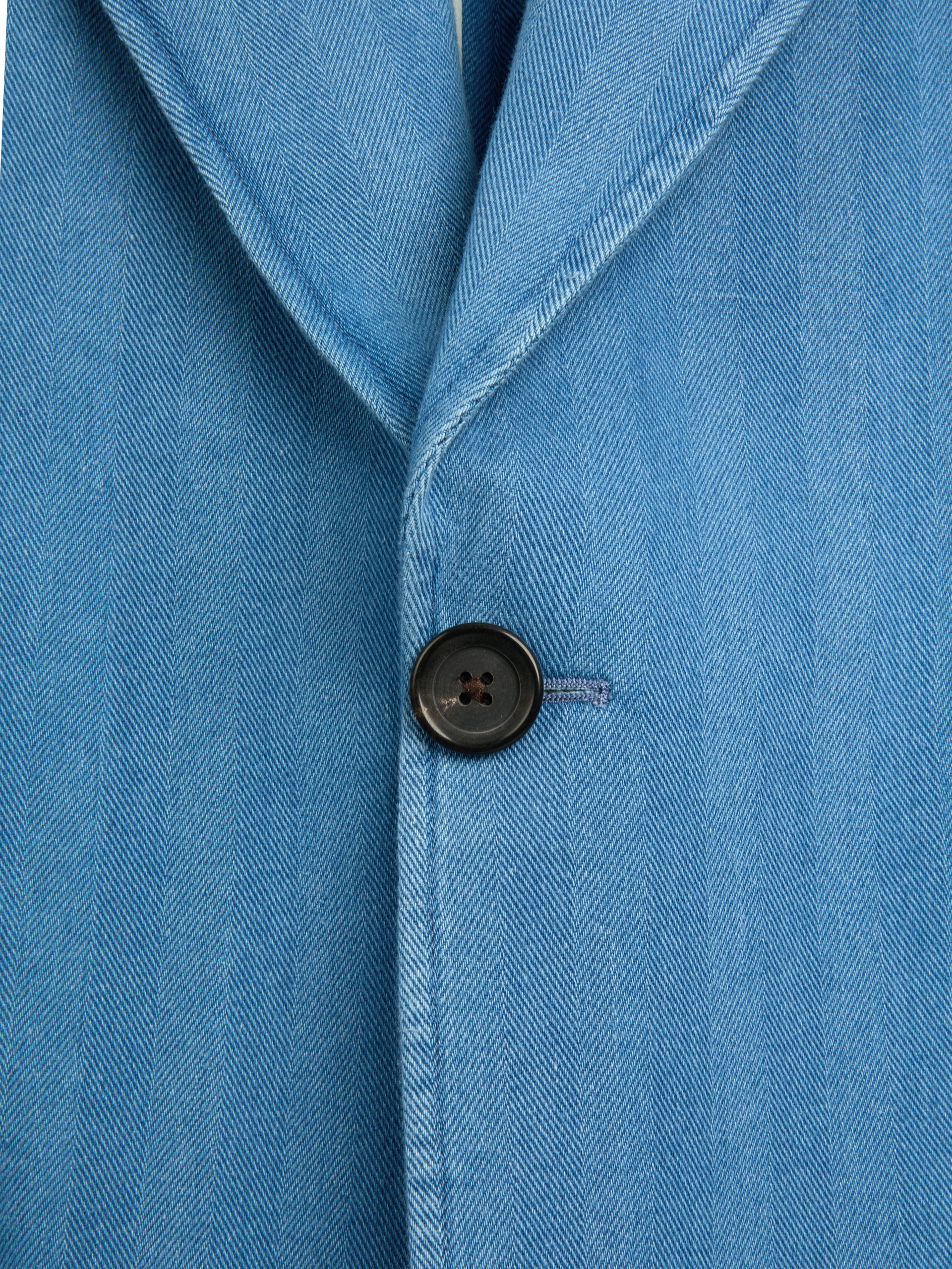 A beautiful spring and summer tailoring option, the  jacket is a single-breasted style cut from an indigo-dyed cotton seersucker fabric, offering an tactile puckered handle. Worn as a separate or part of a suit, it's the height of relaxed seasonal tailoring.