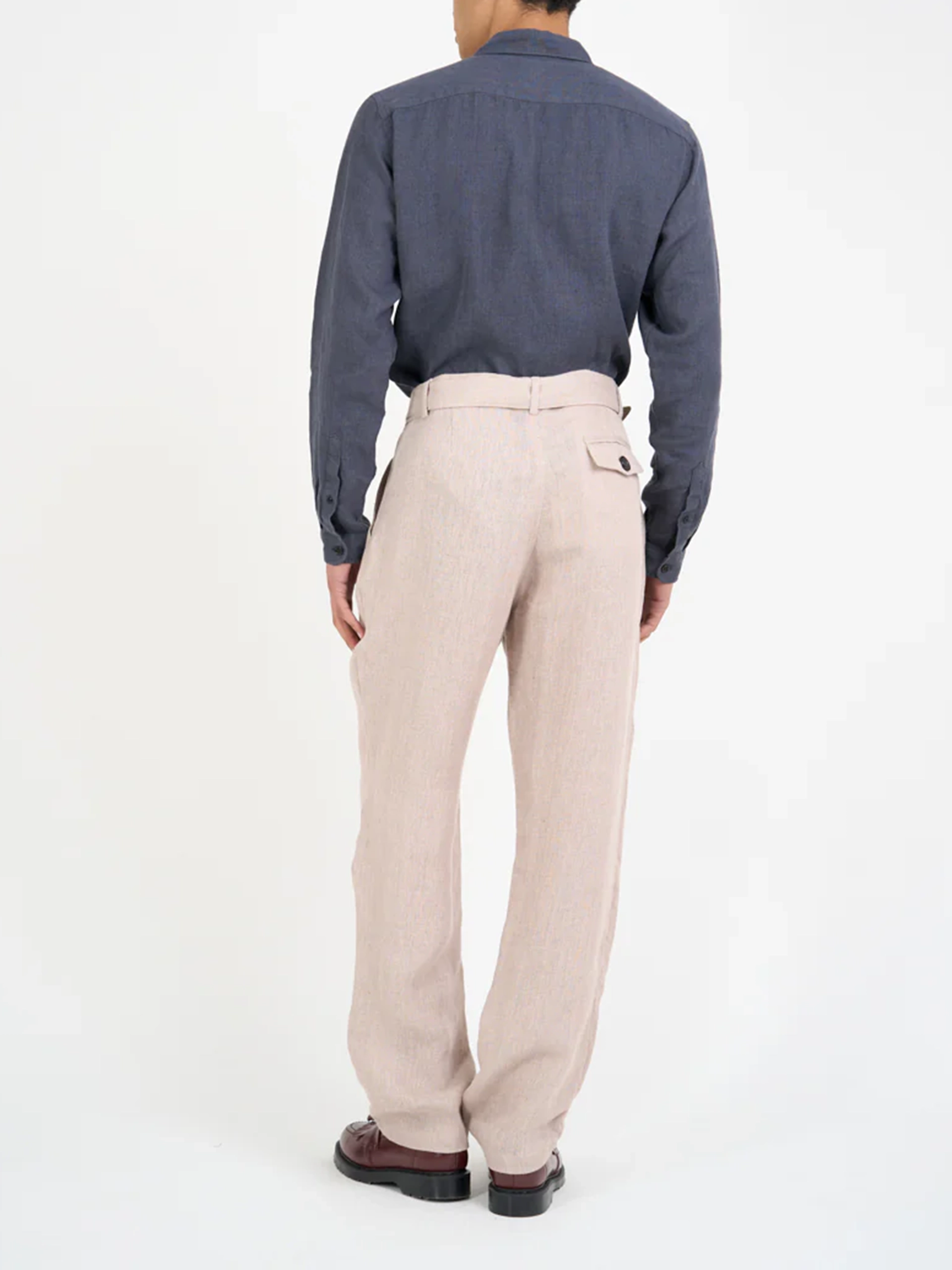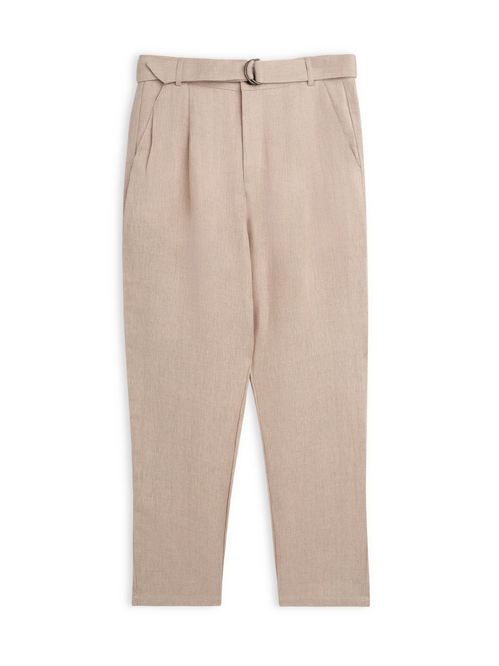Cut from 100% linen, our belted trousers have a relaxed modern silhouette and are fastened with a built-in belt construction. Lightweight for the transition between spring and summer, and with single pleat