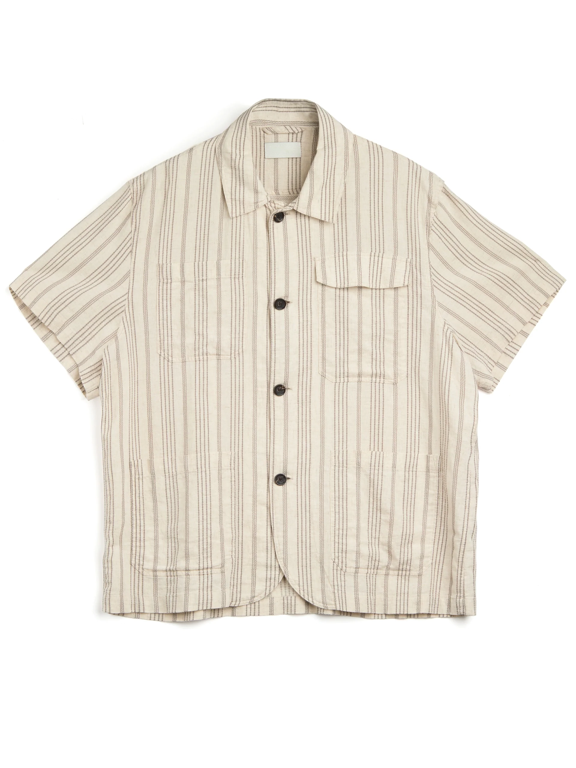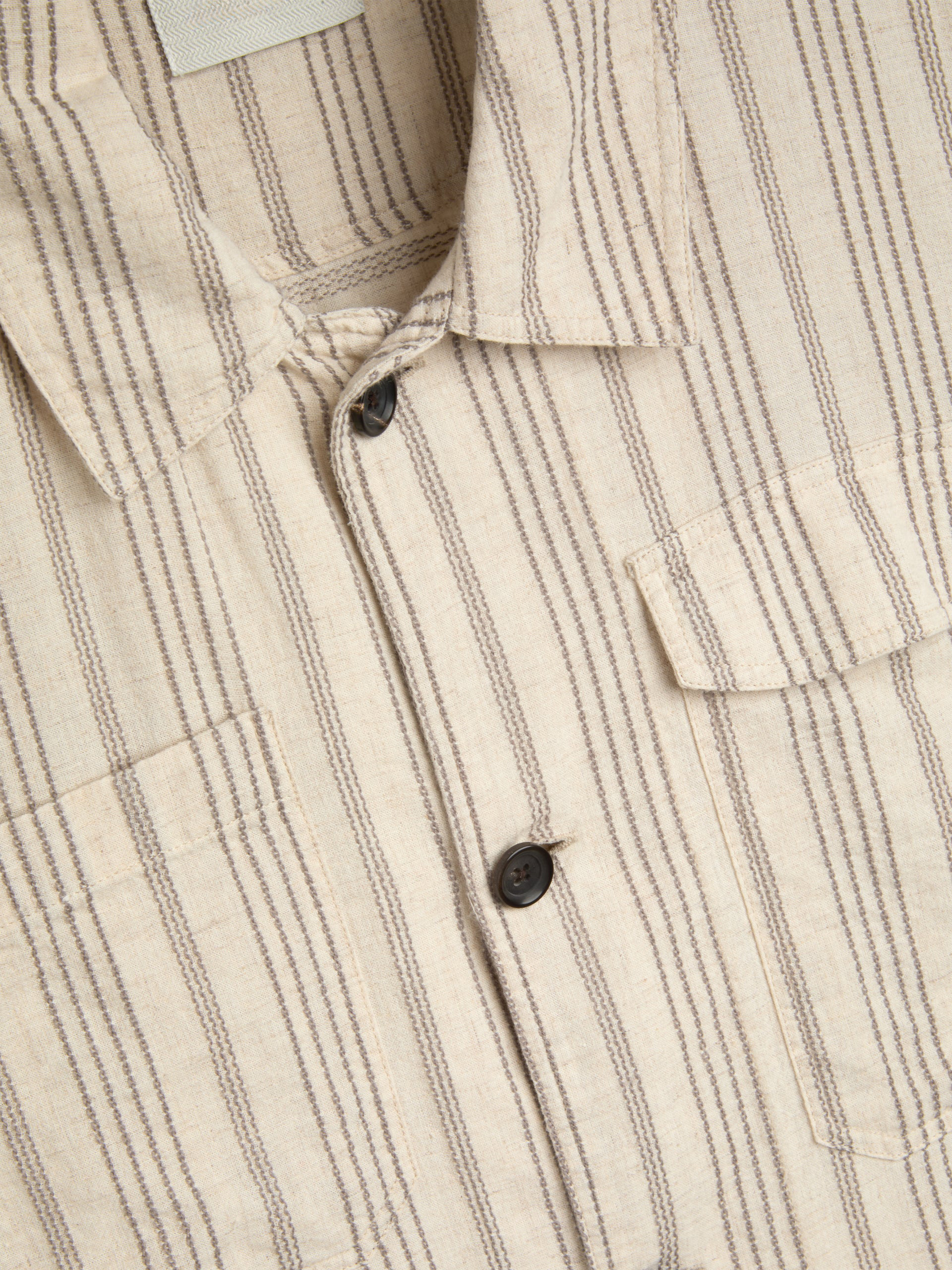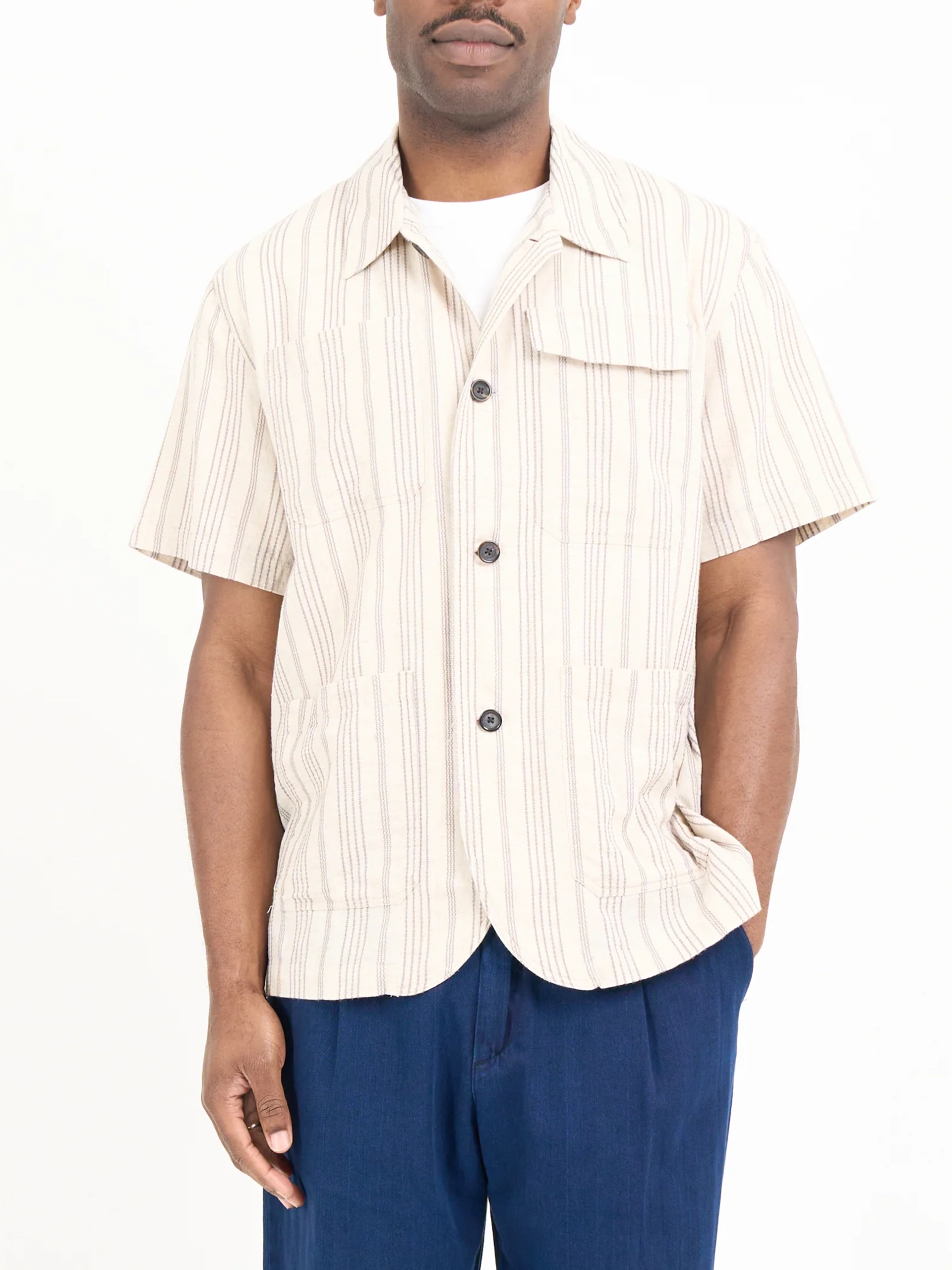 On the classic four pocket safari shirts of old, this contemporary version has been crafted from a midweight cotton-hemp with a jacquard stripe. With a relaxed fit, and four front patch pockets, its a stunning rendition for a modern wardrobe.