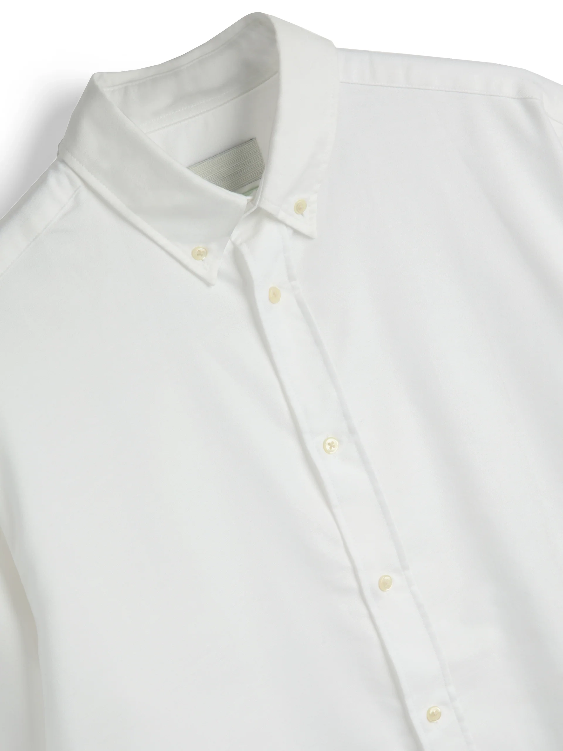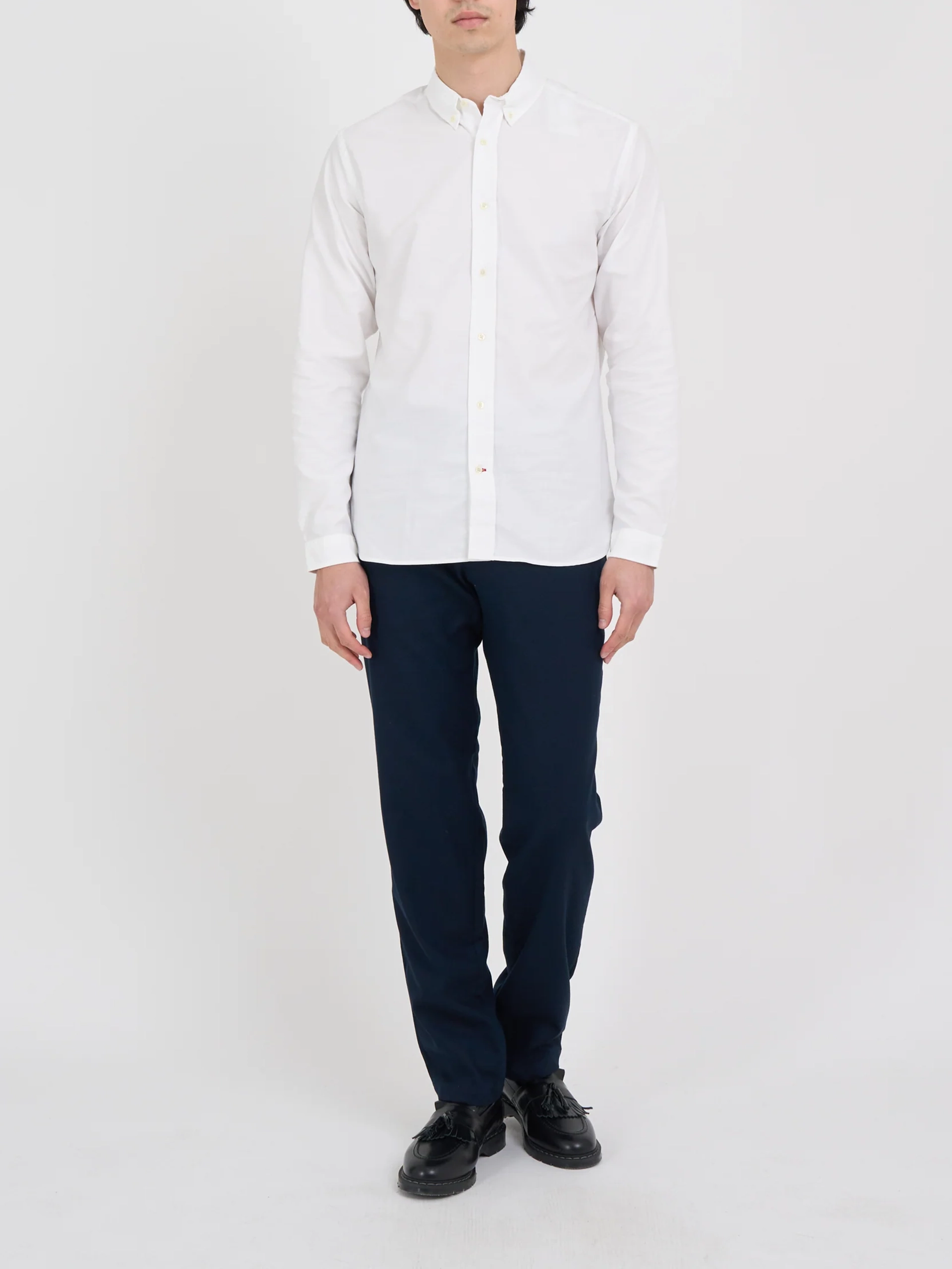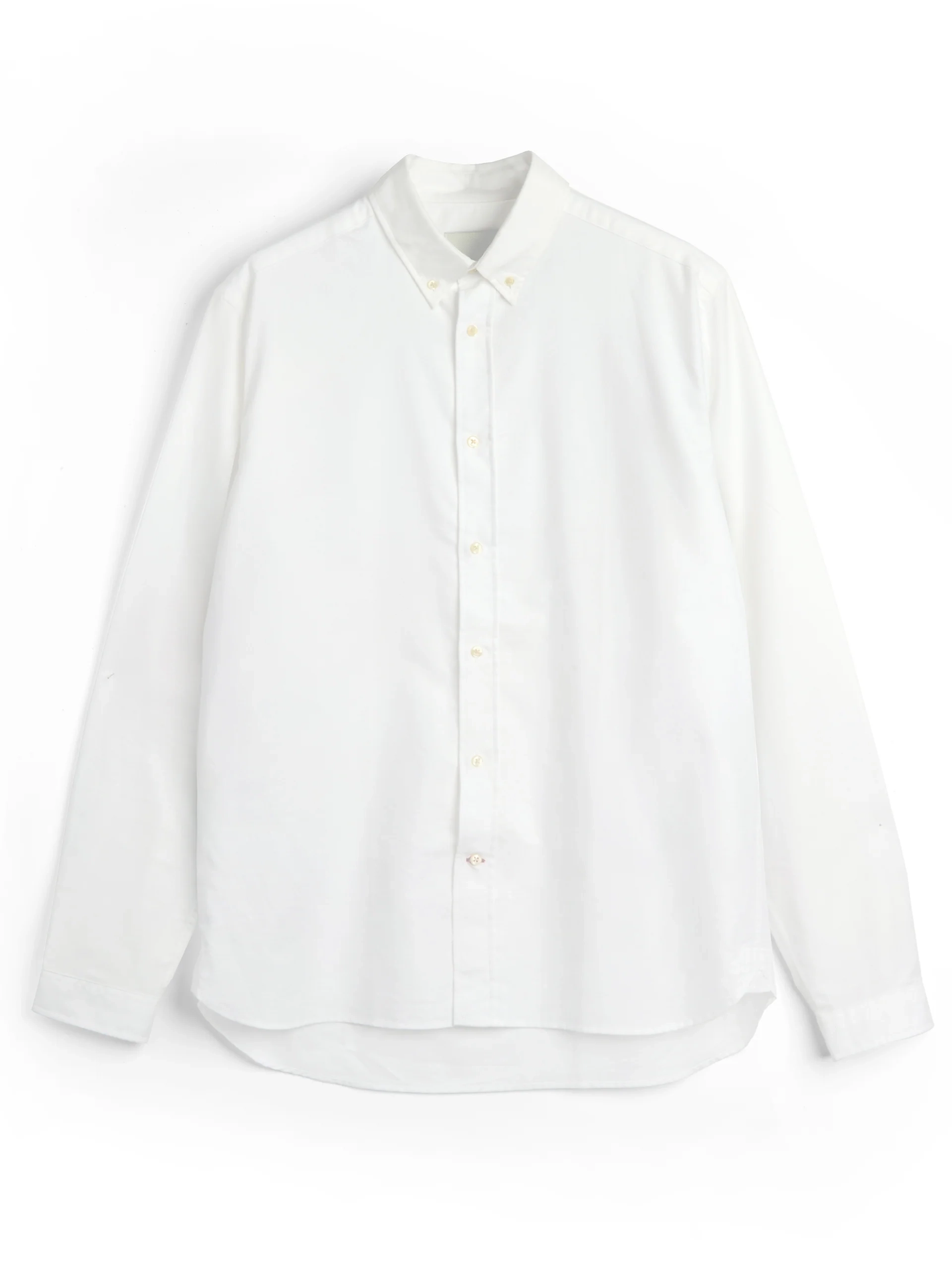 The shirt is a regular classic button-down collar shirt with a wide front placket and one-button cuff. Inspired by the original button-down military shirts of the last century.