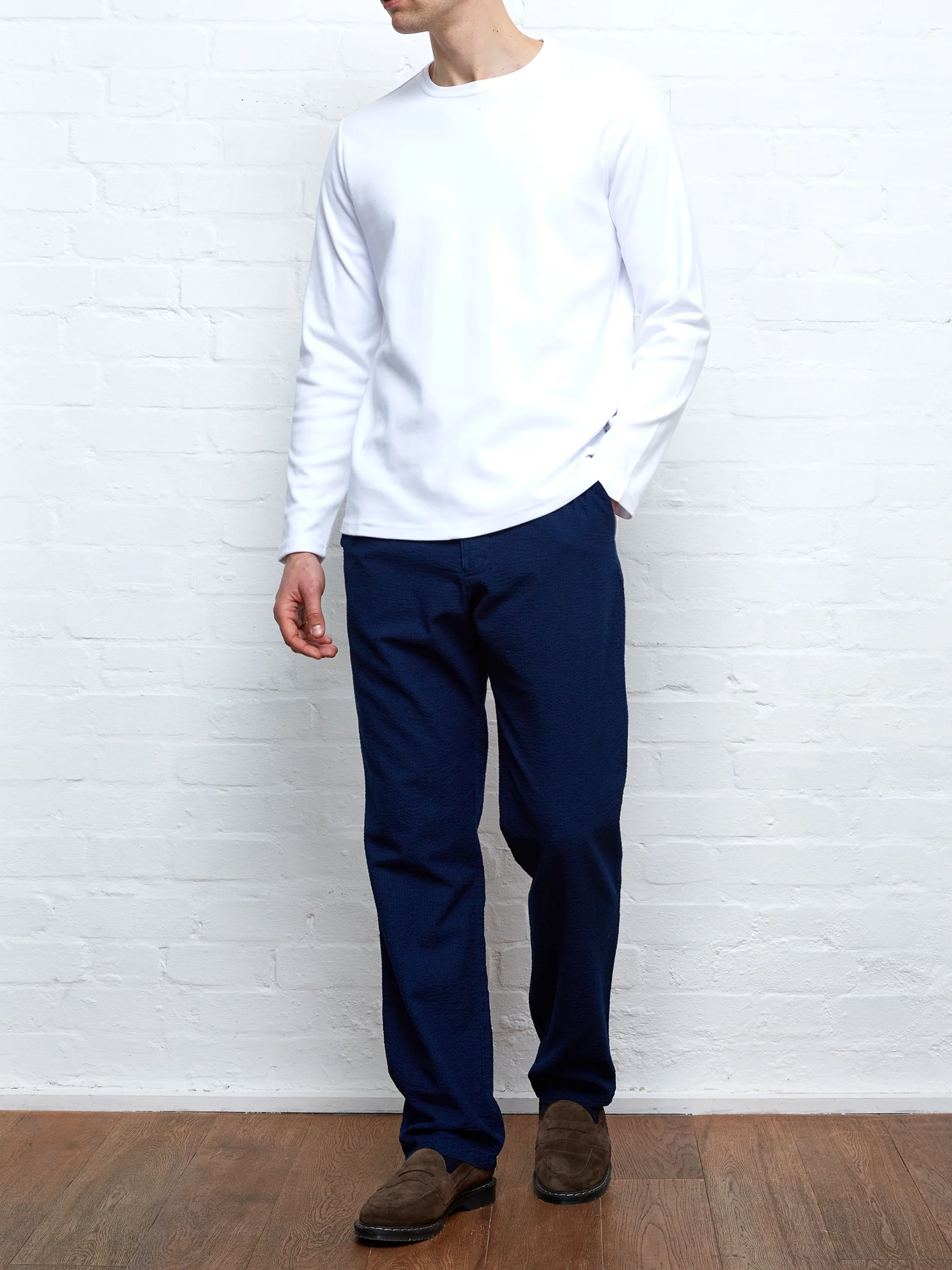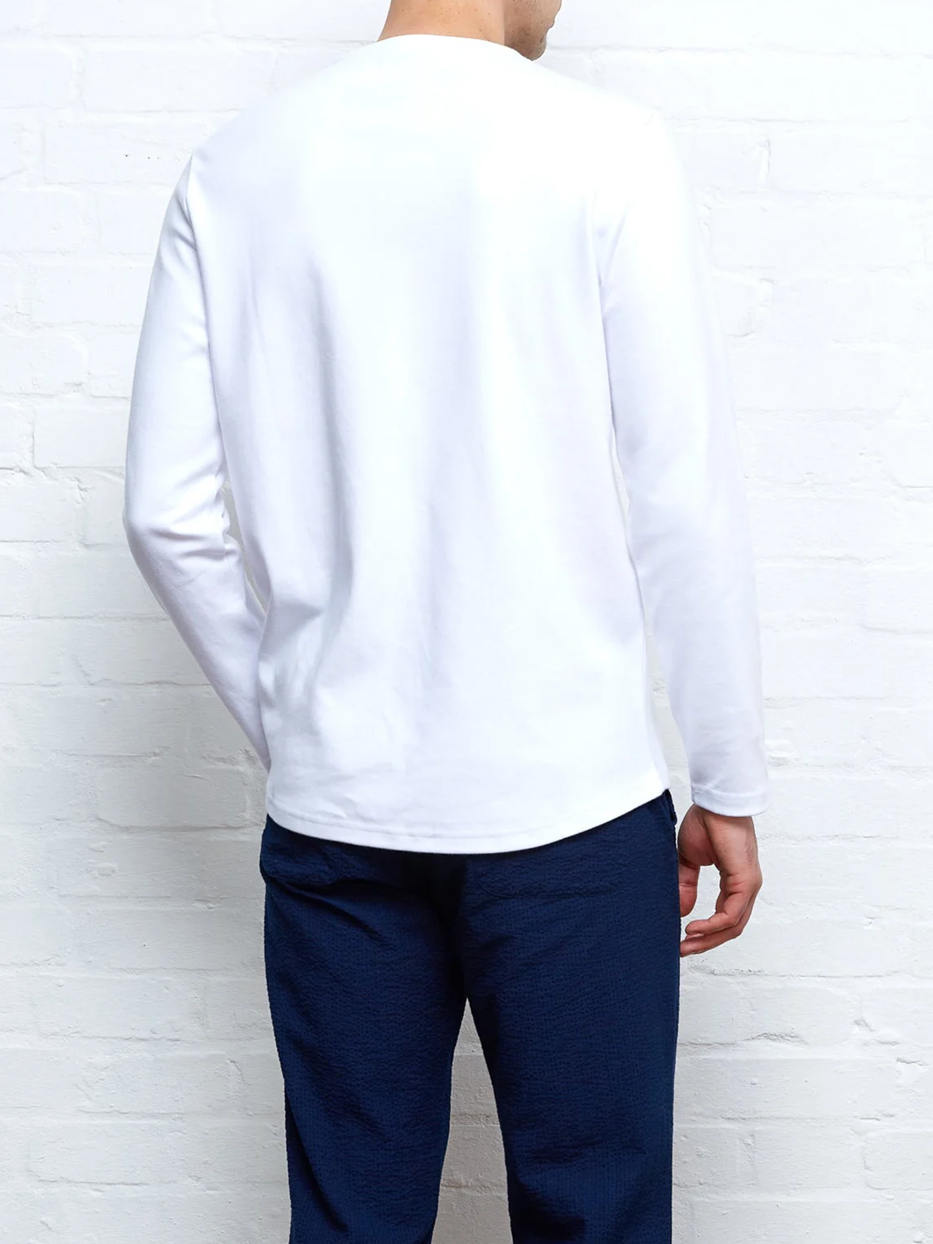 Our long-sleeved tee is exactly that! Constructed from 100% organic cotton, it boasts a satisfyingly heavy drape, helping to keep its shape. Smarter than your average t-shirt, it can be worn on its own or with relaxed tailoring for a sharp yet dressed down vibe.