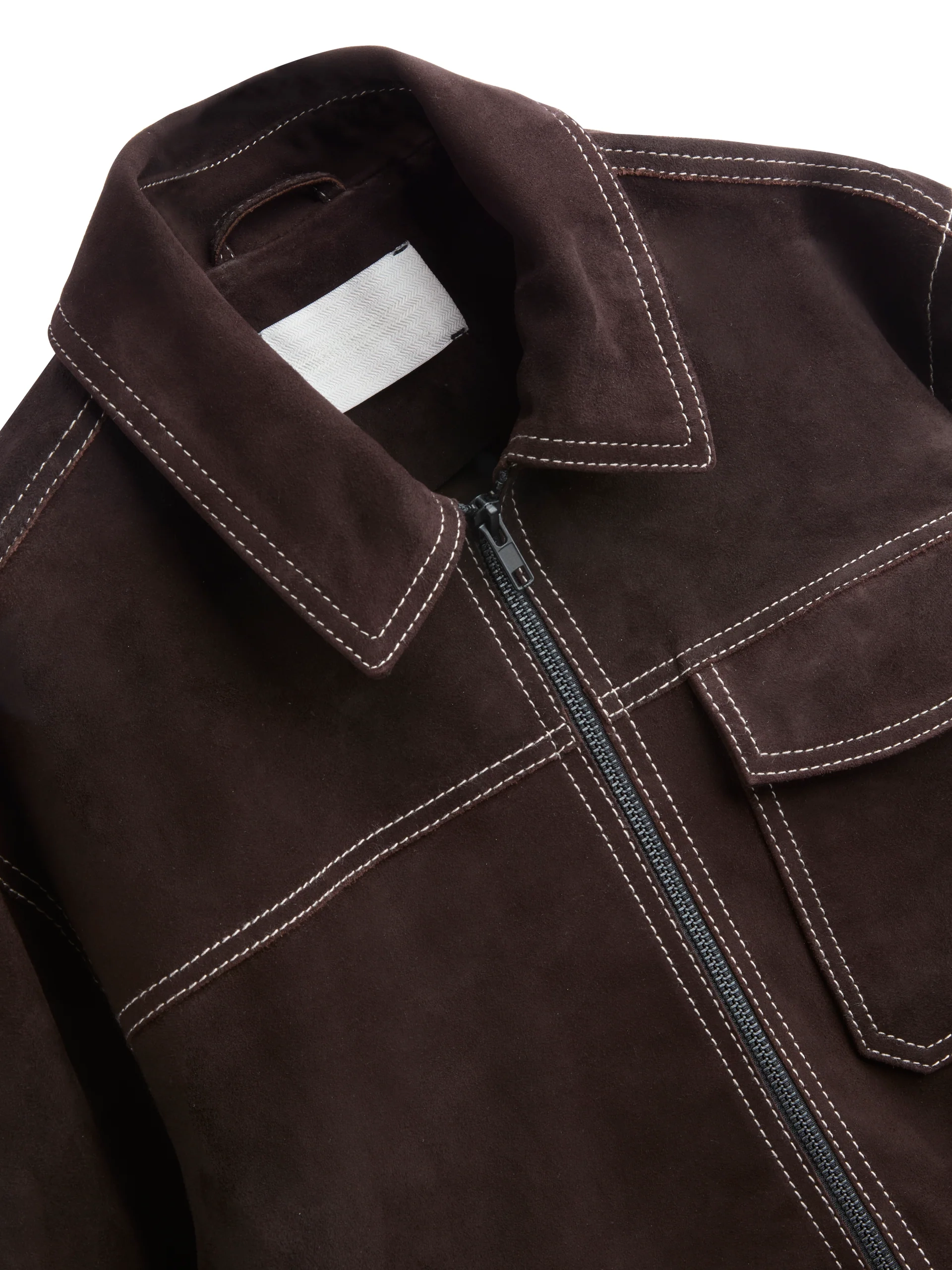 Zip-Up Suede Chocolate Brown Jacket 1462579